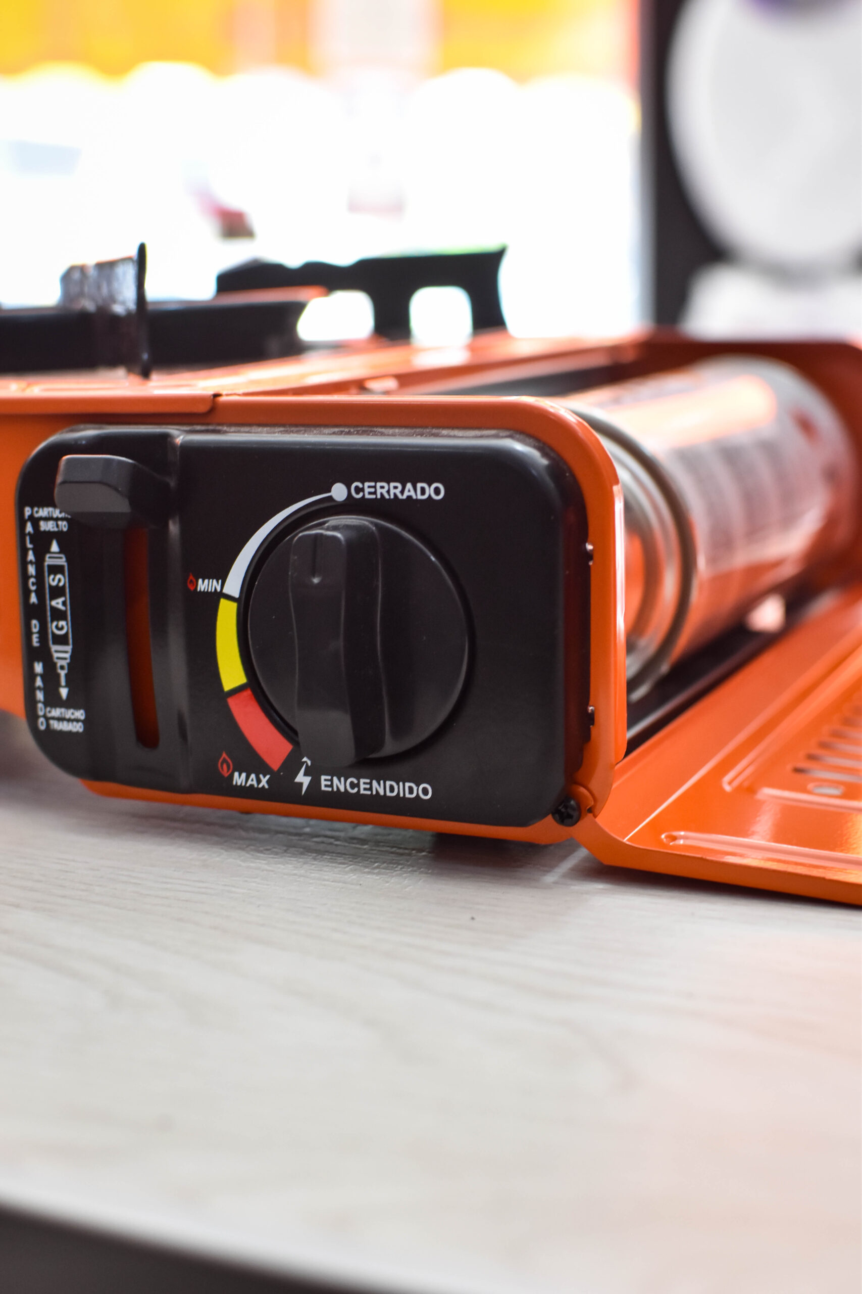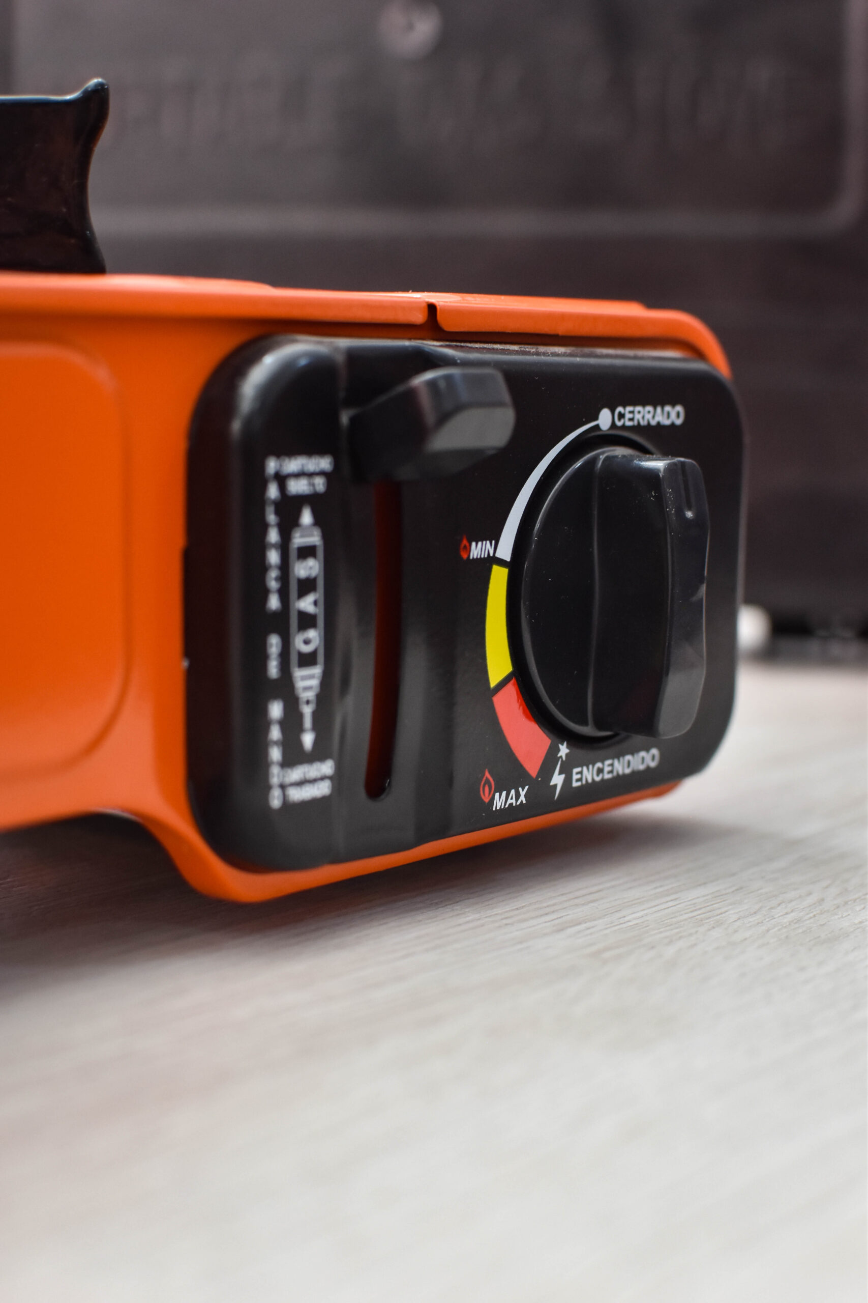 Cuenta con un sistema de encendido piezoeléctrico que permite iniciar la llama con un solo movimiento, sin necesidad de fósforos. Su hornalla metálica de alta eficiencia distribuye el calor de manera uniforme, permitiendo cocinar rápido y con menor consumo de gas. Además, incorpora un control de llama preciso y un soporte estable para ollas y sartenes.