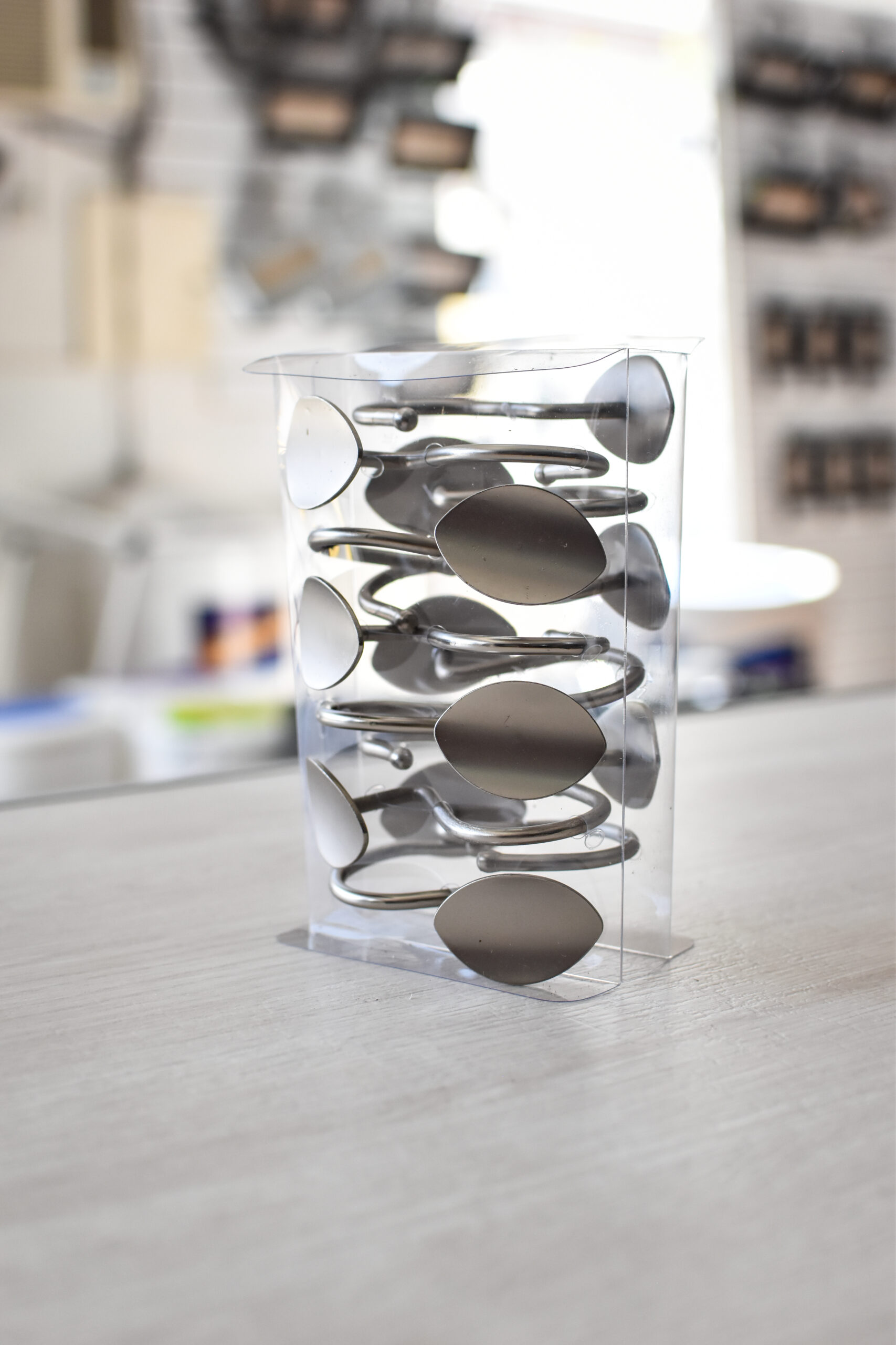 Vienen presentados en un práctico estuche transparente que facilita su almacenamiento y transporte. Si buscás una opción estética y confiable, los ganchos metálicos D’accord son la mejor elección para mantener tu cortina bien sujeta y funcionando correctamente.