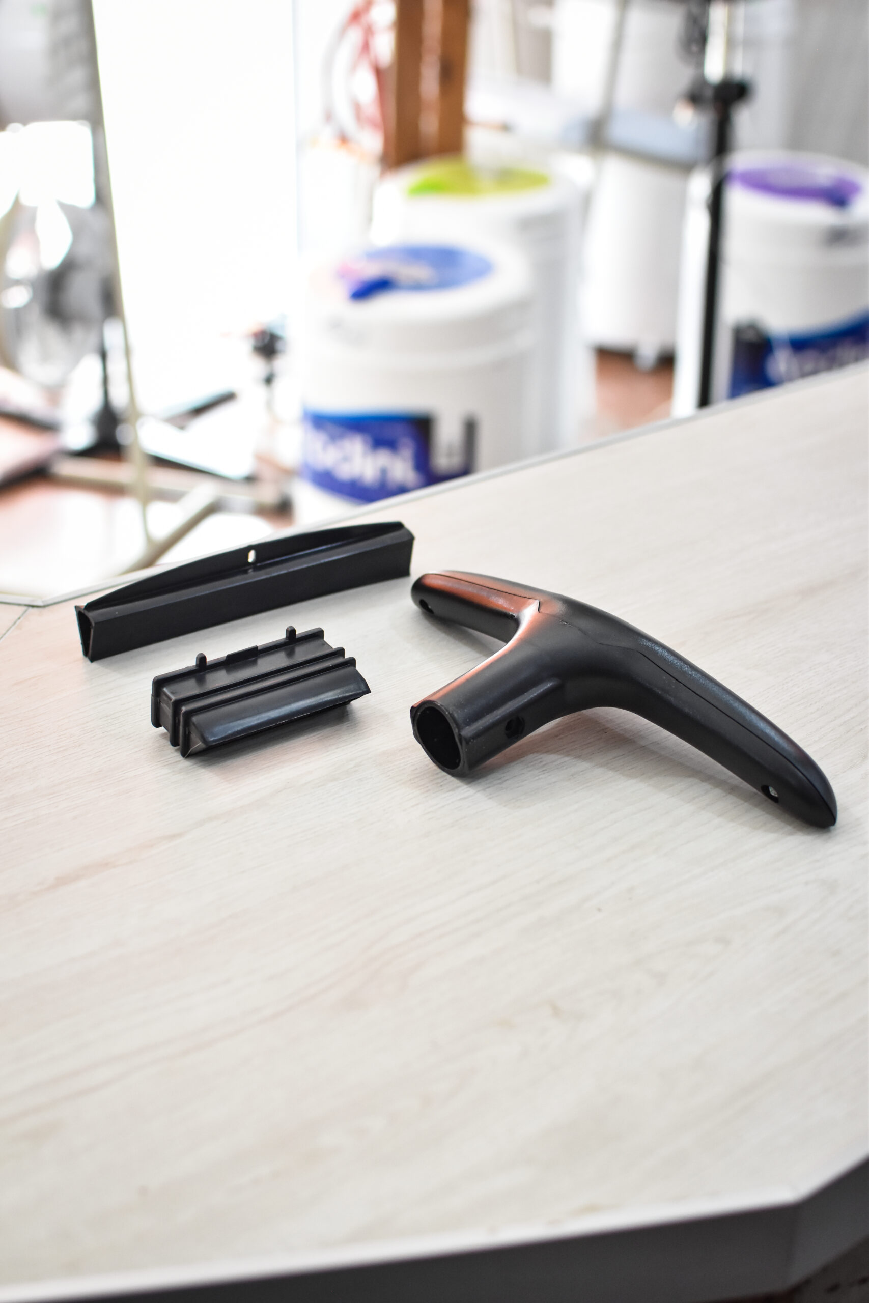 Incluye las piezas fundamentales para un correcto armado y funcionamiento de la lustraaspiradora: mango ergonómico, boquilla de encastre y broche de fijación, fabricados en material plástico resistente y duradero. Su diseño permite un agarre cómodo, una correcta conducción del aire y una fijación firme durante el uso.