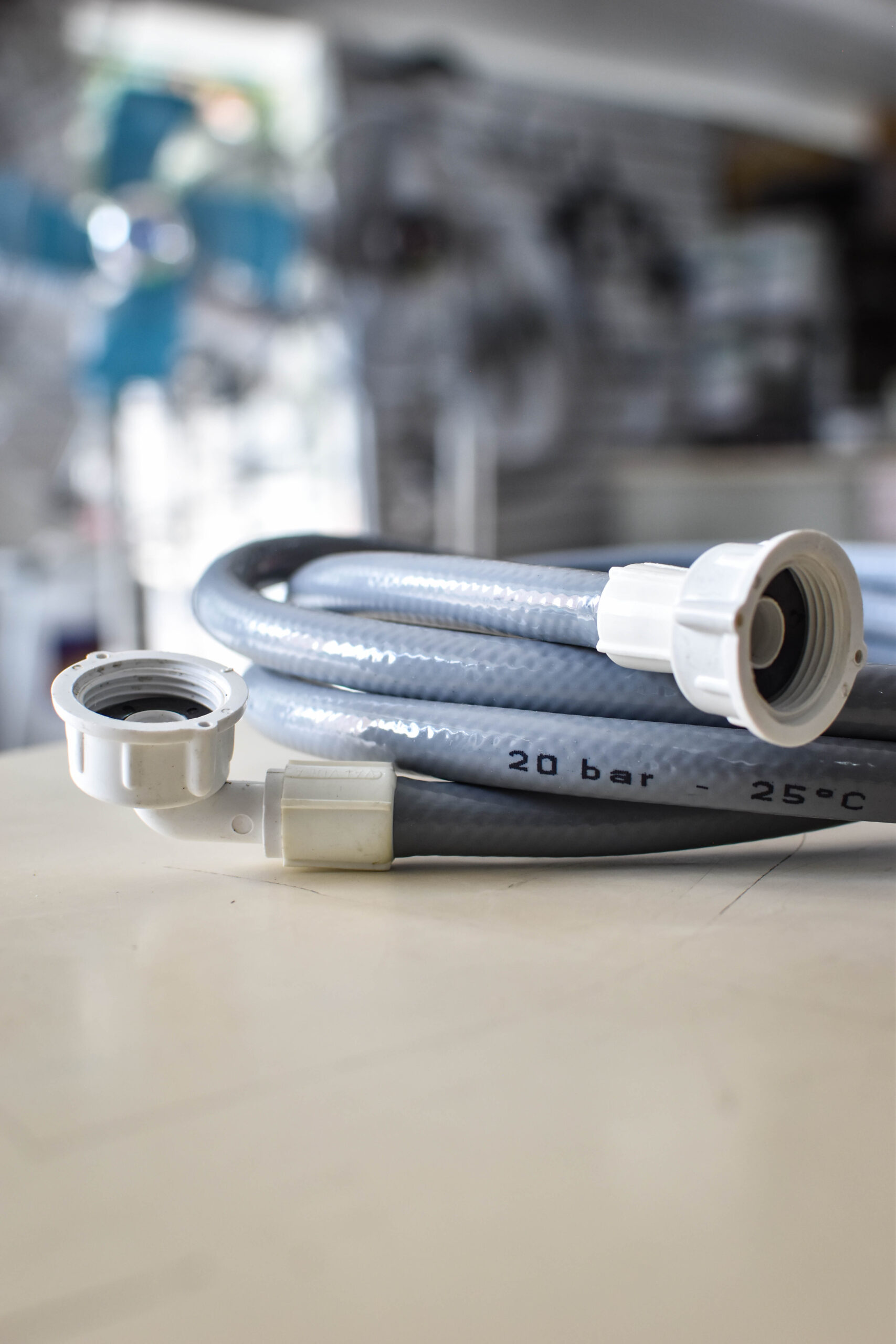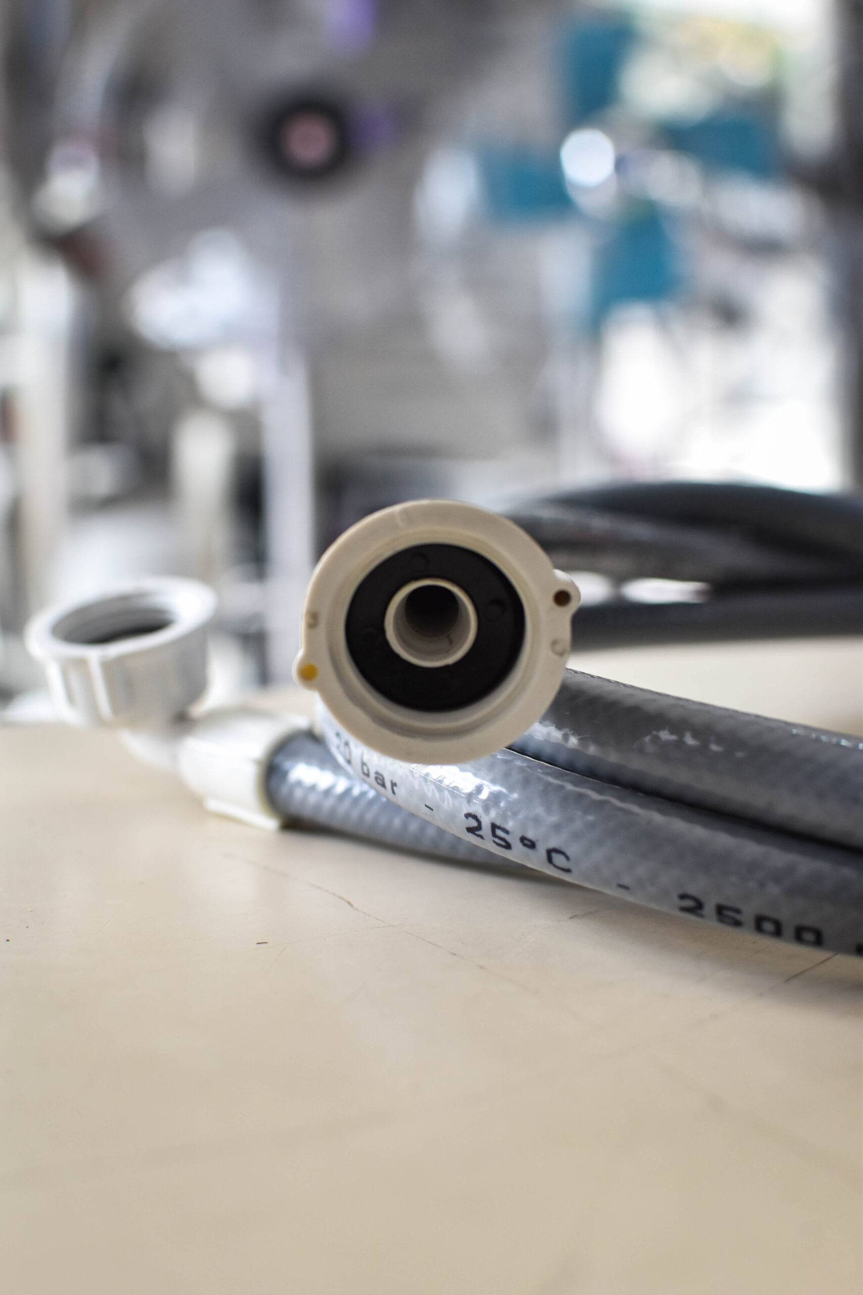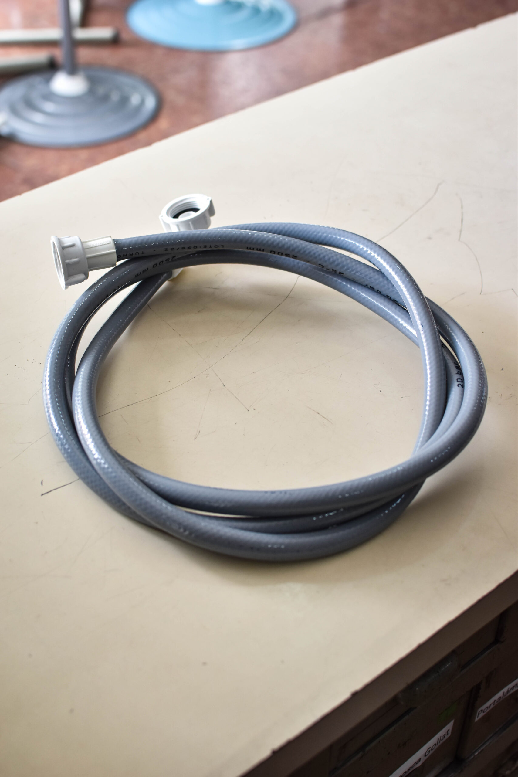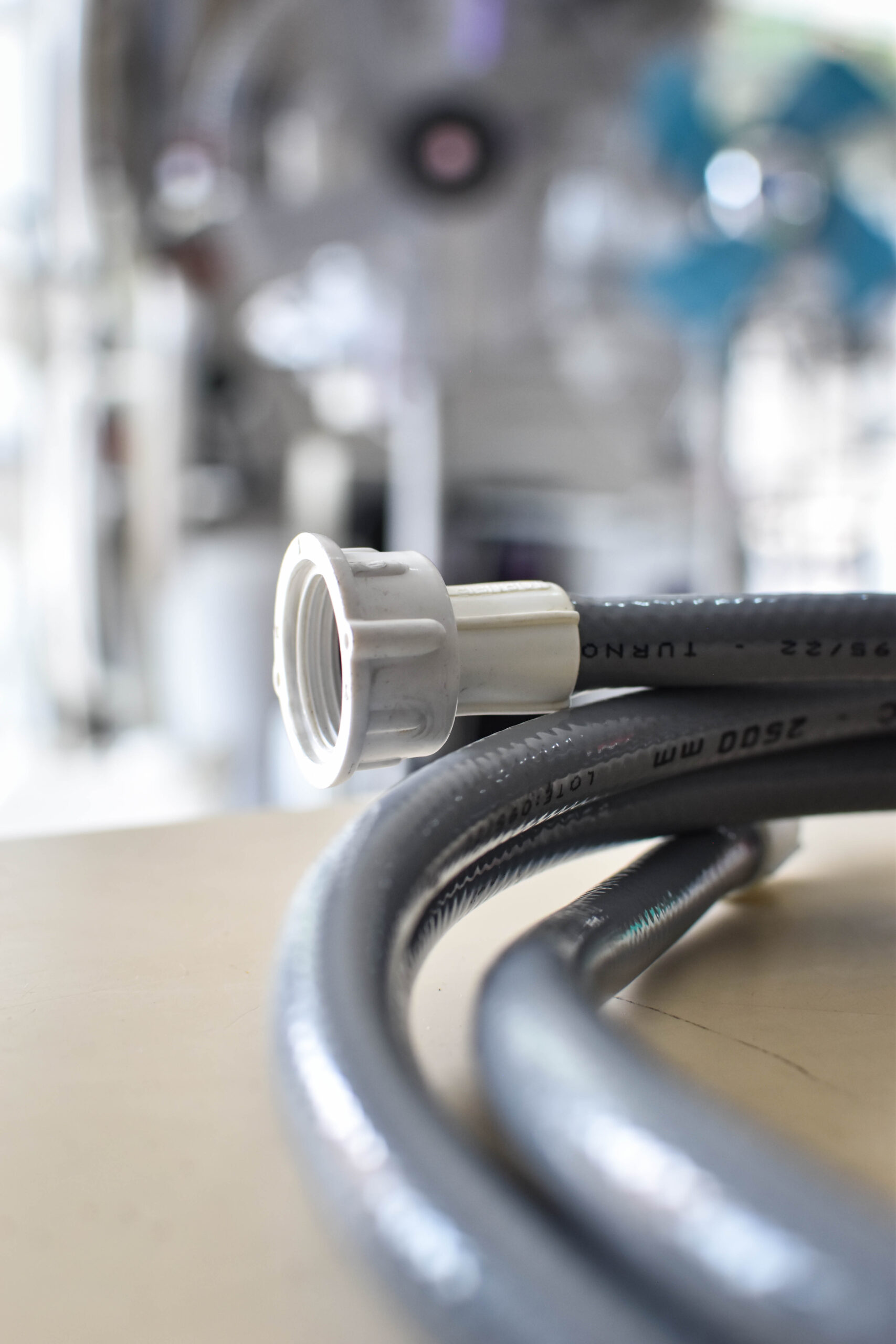Manguera reforzada para carga de agua en lavarropas.