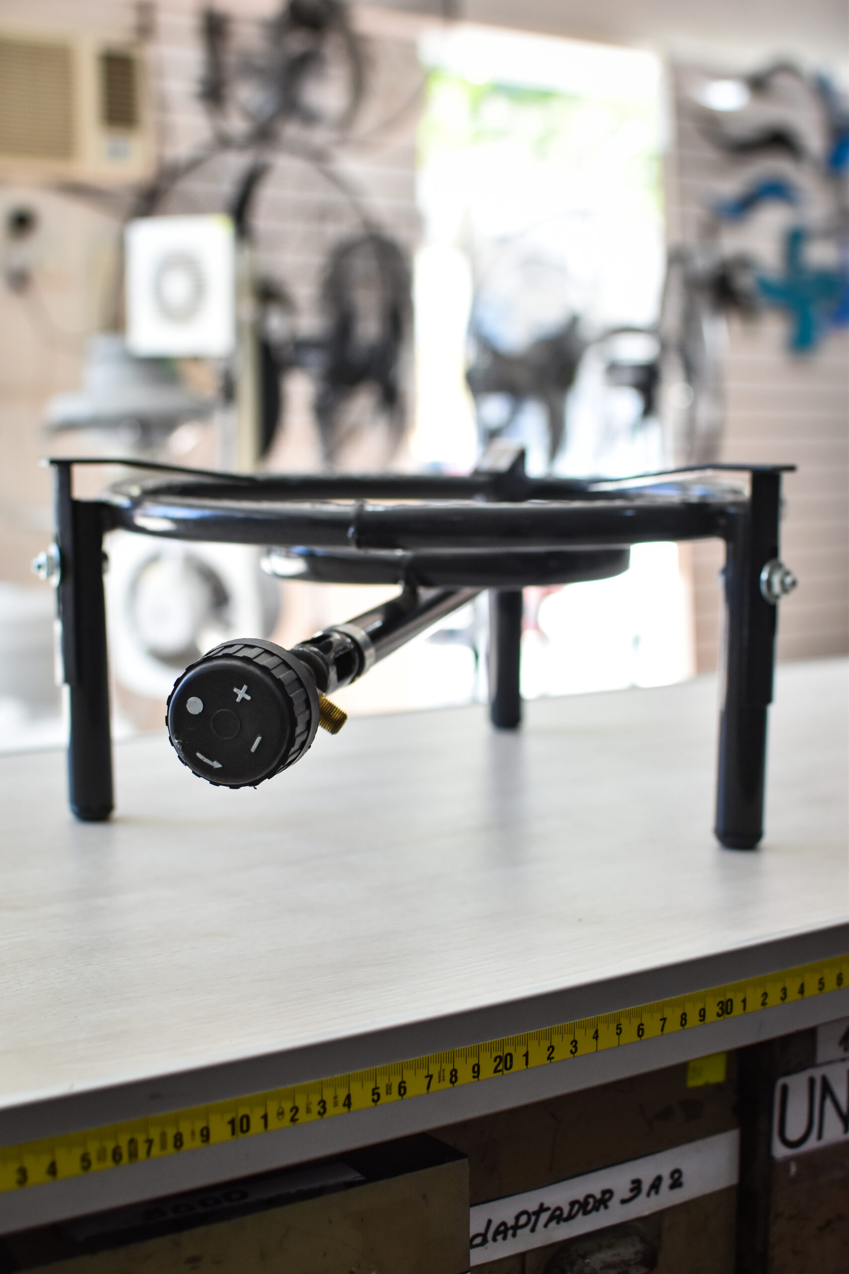 Cuenta con un robinete regulador, que permite ajustar la intensidad de la llama con precisión, brindando mayor control al cocinar. Es compatible con garrafas y equipos de gas tradicionales, siendo perfecto para campings, quinchos, ferias gastronómicas y uso doméstico.