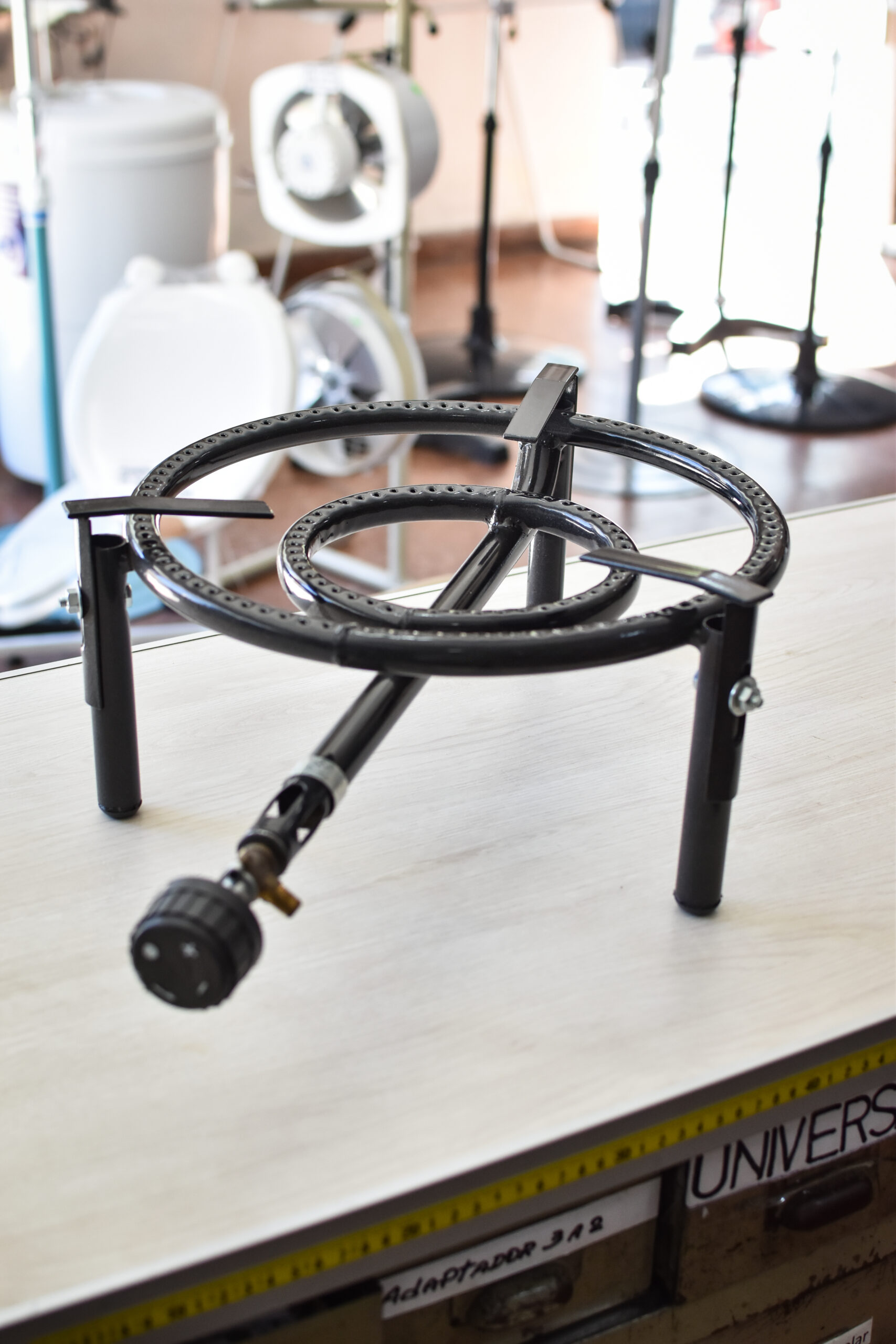 Su tamaño compacto y patas firmes lo hacen fácil de trasladar y utilizar en cualquier superficie segura. Fabricado en materiales de alta resistencia, este paellero soporta ollas y paelleras de gran tamaño sin deformarse ni perder estabilidad.